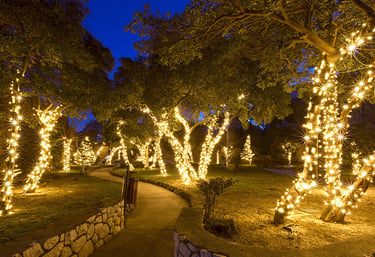 We wrap trees, bushes, and shrubs with precision, and highlight landscaping elements for a balanced, premium look.