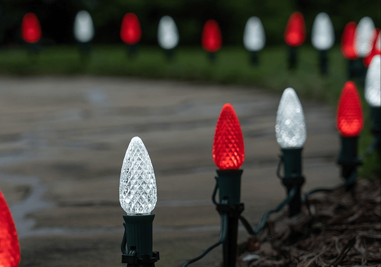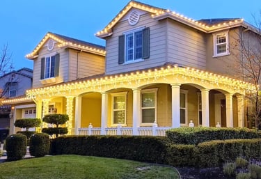 We design and install custom-fit roofline lighting using commercial-grade LED C9 bulbs, mounted cleanly along peaks, gutters, and edges for a seamless, professional look.